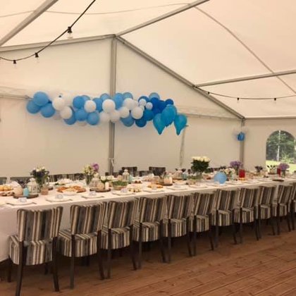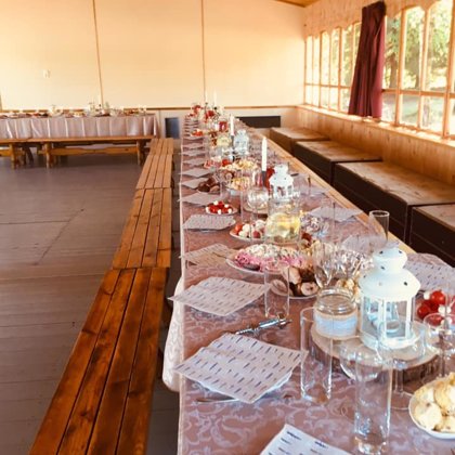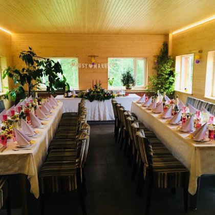 • Nepieciešamības gadījumā piedāvājam galda piederumus pasākuma norisei (šķīvjus, galda piederumus un dzērienu glāzes)